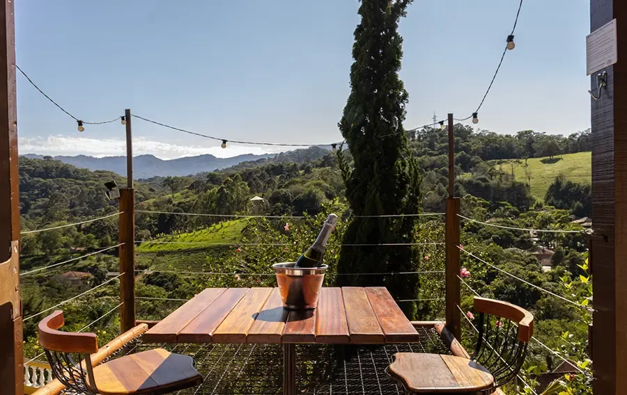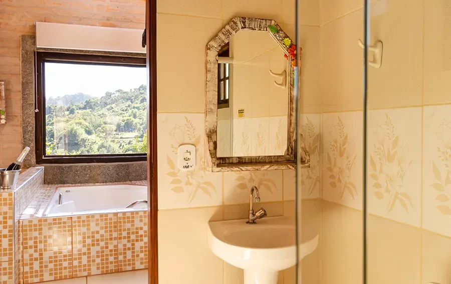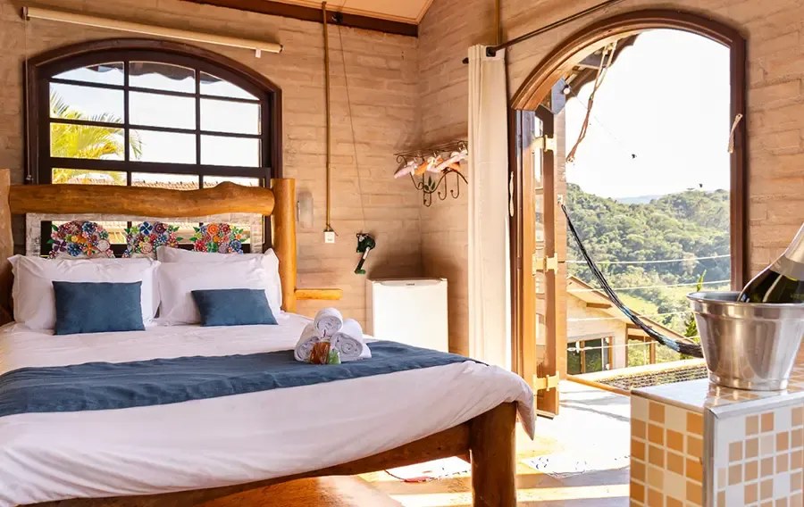 Um refúgio sofisticado para casais que buscam conforto e exclusividade em meio à natureza. A combinação entre lareira, hidromassagem e vista panorâmica cria o cenário perfeito para momentos de descanso e conexão.