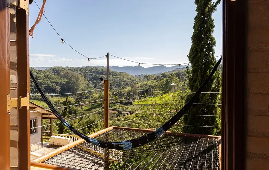 A hidromassagem, o calor da lareira e a vista das montanhas criam um ambiente perfeito para desacelerar. Um espaço pensado para quem deseja relaxar com mais conforto, sem abrir mão da privacidade e da tranquilidade.